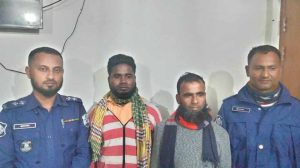 Monir Hossain Miah, OC Bhola Sadar Model Police Station said on Thursday, at about 5:50 pm on Tuesday while fishing with illegal current nets, a team led by Md. Aktar Hossain, in-charge of Ilisha Naval Police Station managed to arrest them. The arrestees are Jahangir Hossain Rarhi son of Abdul Latib and Based Dhali son of late Idris Ali Dhali. They are known to be residents of Mehediganj in Rajapur upazila under Barisal district. Both the accused have been referred to the court in a case under the amendment of the Fisheries Protection and Conservation Act, 2013. Police sources confirmed.