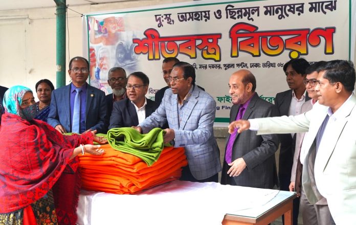 Bangladesh House Building Finance Corporation (BHBFC) distributed winter clothes among the poor and cold-stricken people in the capital on 8, January. Under this program, more than one hundred pieces of blankets were distributed among the low-income families residing in Purana Paltan area. ASM Abdul Halim, the BHBFC board chairman, handed over the blankets while the Managing Director Mr. Md. Abdul Mannan, Deputy Managing Director Mr. Md. Noor Alam Sardar and high officials of the organization were present.