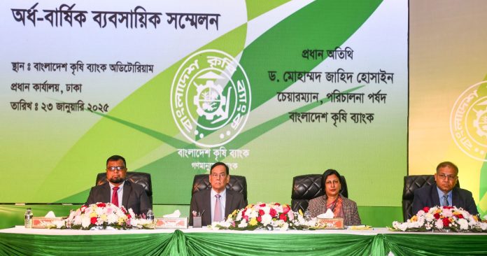Bangladesh Krishi Bank (BKB) conducted half yearly business conference on 23 January 2025 at bank’s Head Office Auditorium. Dr. Mohammad Zahid Hossain, the Chairman of the Board of Directors was present in the conference as the chief guest. The Managing Director Sanchia Binte Ali gave directives to achieve 100% business target for the FY 2024-25 and emphasized to make every branch profitable. Meanwhile, she gave special thanks to all the employees for achieving `Top Ten Remittance Award 2024’ from Ministry of Expatriates’ Welfare and Overseas Employment & Centre for NRB. The Deputy Managing Directors of the bank Md. Abdur Rahim, Khan Iqubal Hossain, all General Managers, Deputy General Managers of Head Office, Divisional GMs, GM of Local Principal Office, GM of BKB Staff College, Divisional Audit Officers, Corporate Branch Heads, Chief Regional & Regional Managers along with Regional Audit Officers were present on the occasion.