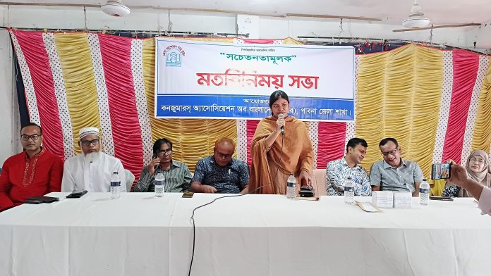 Mansur Alam, Pabna: A discussion and exchange of perspectives with the students took place at the auditorium of Pabna Central Girls High School on Tuesday at 11:30 am, organized by the Consumers Association of Bangladesh (CAB) Pabna district branch.