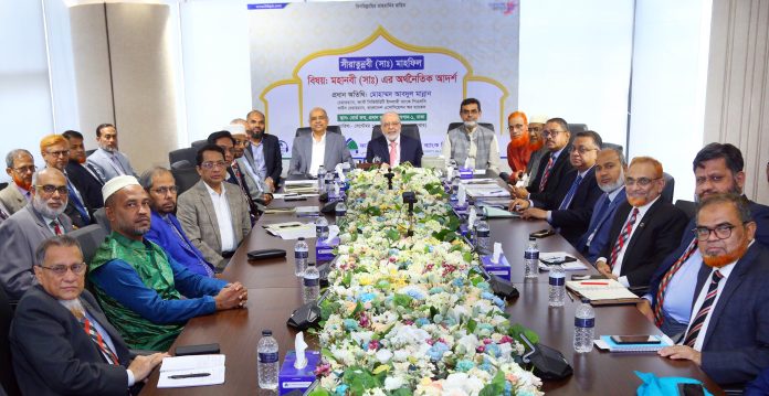 On the occasion of Prophet’s Day, a discussion meeting on ‘The Economic Principles of Prophet Muhammad (PBUH)’ was held at the head office of First Security Islami Bank on September 16, 2024, Monday. The meeting, which was broadcast live on digital platforms and social media, was attended by over a thousand bank officials. The chief guest, Mohammad Abdul Mannan, Chairman of the bank, stated that First Security Islami Bank is playing a crucial role in the country’s socio-economic development by implementing the economic principles of Prophet Muhammad (PBUH). He urged all bank employees to work diligently to eliminate economic disparity through equitable distribution of resources and to establish a balanced and compassionate society.