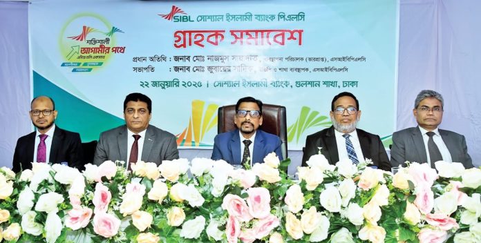 Gulshan Branch of Social Islami Bank organized a Client Get-together on 23 January. Md. Nazmus Saadat, Managing Director (Acting) of the bank was present as chief guest. The program was presided over by Muhammed Zubair, Manager of Gulshan Branch. Among others, Md. Abdul Mottaleb, Manager of Principal Branch, Md. Mozaharul Haque, Head of IRMD-I and Mohammad Moinuddin Hossain, Manager of Banani Branch were also present in the meeting. More than two hundred clients of the bank joined the program and ensured full co-operation to the bank.