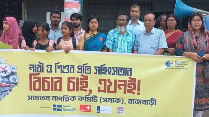 Md. Nazrul Islam, Rajbari District Correspondent: A human chain program was held in Rajbari with the slogan “I want justice for violence against women and children now”.