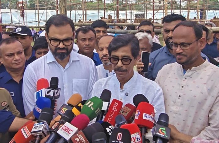 On Monday (April 13), Agriculture, Fisheries and Livestock Minister Mohammad Amin Ur Rashid, Tangail Sadar MP and State Minister for Fisheries and Livestock Sultan Salahuddin Tuku, and State Minister for Youth and Sports Aminul Haque visited the assembly site and saw the progress of the work at Shaheed Maruf Stadium in Tangail around 11 am. Tangail Deputy Commissioner Sharifa Haque and Superintendent of Police Muhammad Shamsul Alam Sarkar were present at the time. District Council Administrator Advocate SM Obaidul Haque was also present.