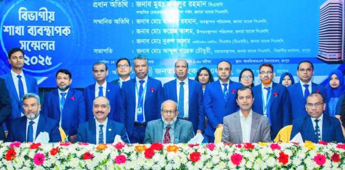 Rangpur Divisional Branch Manager Conference of Janata Bank Plc was held on Friday 14th March 25th. Chairman of the bank Muh Fazlur Rahman spoke as the chief guest in the conference. Managing Director Md. Mojibur Rahman, Deputy Managing Director Md. Faiz Alam and Md. Nurul Alam, FCMA, FCA (CFO) were present as guests of honor. Area heads and other executives and branch managers of Rangpur Division participated in the conference held under the chairmanship of Md. Abdul Barek Chowdhury, General Manager of Rangpur Divisional Office.