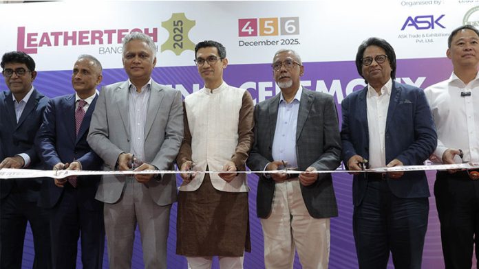 “Leathertech Bangladesh,” an international exhibition featuring footwear machinery, accessories, chemicals, and leather industry items, has commenced. The Expo Village of the International Convention City Bashundhara (ICCB) in the capital hosted the opening of the event’s eleventh edition.