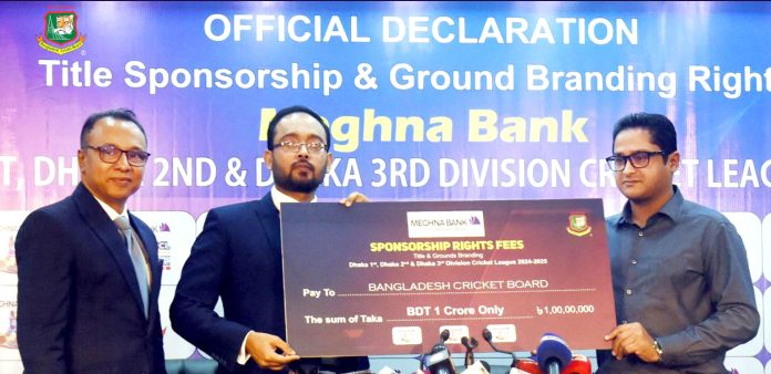 The Dhaka First, Second and Third Division Cricket Leagues will be sponsored by Meghna Bank PLC. The Bank has signed a one-year agreement with the Bangladesh Cricket Board (BCB) for these three domestic Cricket Tournaments.