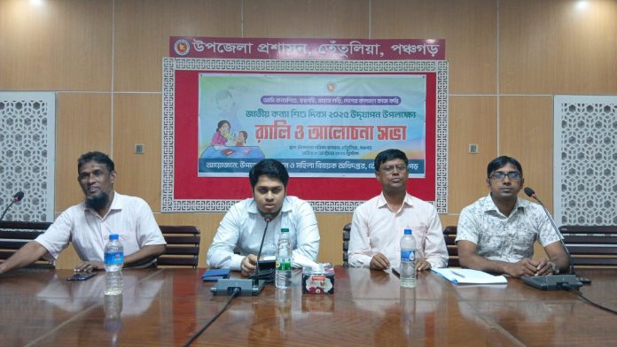 Panchagarh Correspondent: National Girl Child Day 2025 was celebrated in Tentulia, Panchagarh with the theme of ”Dreaming, fighting with courage, working for the welfare of the country”. This Wednesday morning, a procession took out from the Upazila Parishad premises and circled the intersection market. Later, Assistant Commissioner (Land) SM Akash spoke as the chief guest in the Upazila Parishad Hallroom under the chairmanship of Upazila Primary Education Officer Md. Jahangir Alam.