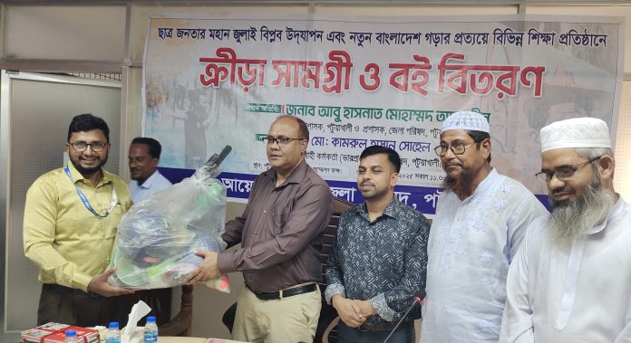 Jahirul Patuakhali Correspondent : Sports equipment and books have been allocated to different educational institutions as part of an initiative by the Patuakhali District Council, commemorating the significant July Revolution of the students and their commitment to constructing a new Bangladesh.