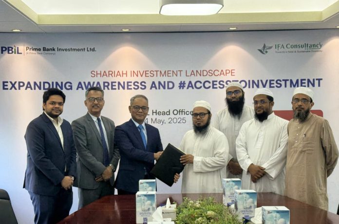 Dhaka, June 18, 2025: Prime Bank Investment Ltd. (PBIL), a leading investment bank and a wholly owned subsidiary of Prime Bank PLC, has signed a Memorandum of Understanding (MoU) with IFA Consultancy Ltd. (IFAC), a premier Shariah advisory firm, to jointly promote Islamic investment in Bangladesh.