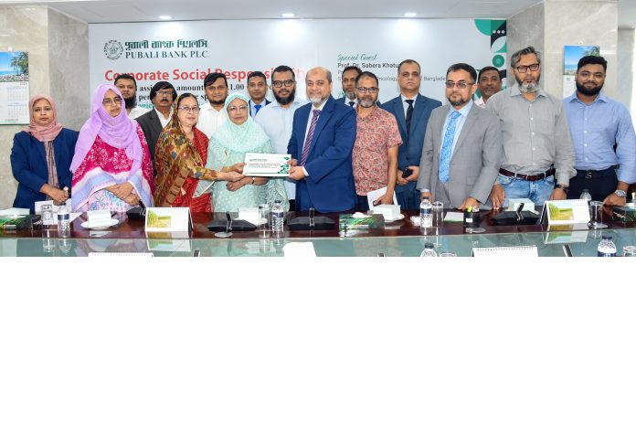 Pubali Bank PLC, as part of its corporate social responsibility, has donated Tk. 01(One) crore to Gynecological Oncology Society of Bangladesh for setting up a permanent office. On this occasion, a function was organized at Pubali Bank’s head office. Managing Director and CEO Mohammad Ali handed over the cheque of the financial donation to Professor Dr. Sabera Khatun, President of Gynecological Oncology Society of Bangladesh. Deputy Managing Directors of Pubali Bank – Mohammad Shahadat Hossain, Ahmed Enayet Manzur, Md. Shahnewaz Khan and Sultana Sarifun Nahar were present. Professor Dr. Nazma Haque, Secretary General of Gynecological Oncology Society of Bangladesh; Md. Faizul Hoque Sharif, General Manager of General Banking & Operation Division and Mohammad Mizanur Rahman, Head of Public Relations of Pubali Bank along with senior officials of both the institutions were present.