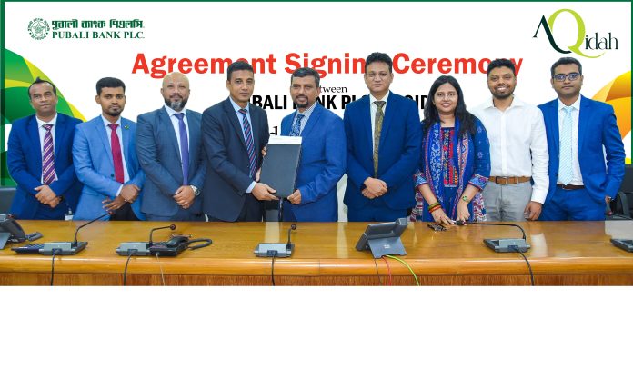 A Memorandum of Understanding (MoU) between Pubali Bank PLC. and Aqidah Healthcare Limited has been signed recently at bank’s Head Office. Md Shahnewaz Khan, Deputy Managing Director of Pubali Bank PLC. and Dr. Md. Ashraful Bari, CEO & Consultant Psychiatrist of Aqidah Healthcare Limited were present in the signing ceremony.