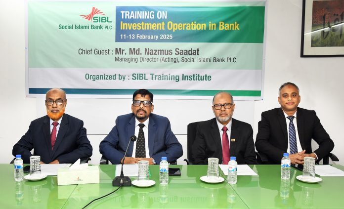 Social Islami Bank arranged three days long training on Investment Operation in Bank at the bank’s Training Institute. Md. Nazmus Saadat, Managing Director (Acting) of the Bank, inaugurated the training as chief guest. A A M Habibur Rahman, Deputy Managing Director, Md. Mahfuzur Rahman, Principal of Training Institute and concerned officials were also present on the program. Around 40 participants from different branches attended at the workshop.