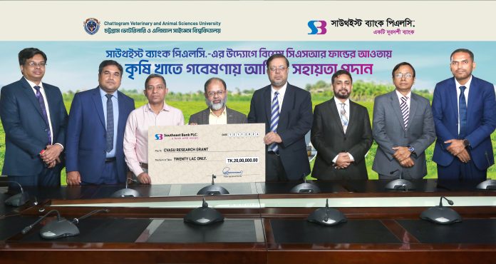 Southeast Bank PLC. has extended its financial support to Chattogram Veterinary and Animal Sciences University to facilitate research activitie sunder Special CSR Fund. The financial assistance was handed over to Professor Dr. Mohammad Lutfur Rahman, Vice Chancellor, Chattogram Veterinary and Animal Sciences University in Presence of Nuruddin Md. Sadeque Hossain, Managing Director, Southeast Bank PLC.