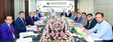 The 400th Board Meeting of Shari`ah based bank, Standard Bank PLC. was held on 31 October 2024 at Boardroom, Head Office, Dhaka. Honorable Chairman of the Board of Directors Mohammed Abdul Aziz presided over the meeting. It was attended by Director & Founder Chairman Kazi Akram Uddin Ahmed, Director & Founder Vice Chairman Kamal Mostafa Chowdhury, Directors Ashok Kumar Saha, Ferozur Rahman, S.A.M. Hossain, Gulzar Ahmed, Md. Zahedul Hoque, A K M Abdul Alim, Md. Abul Hossain and Independent Director Golam Hafiz Ahmed. Md. Habibur Rahman, Managing Director & CEO, Md. Siddiqur Rahman, Deputy Managing Director and Md. Mizanur Rahman, FCS, Company Secretary were also present in the meeting.