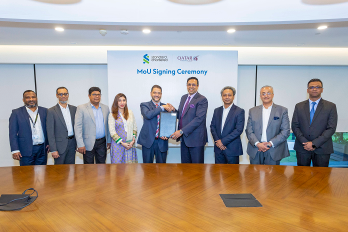 The (MoU) was signed at Standard Chartered head office in Gulshan. Mr. Naser Ezaz Bijoy, Chief Executive Officer of Standard Chartered Bangladesh and Mr. Mohamed El Emam, Country Manager-BD&NP of Qatar Airways along with other senior officials from both organizations were present in the signing.