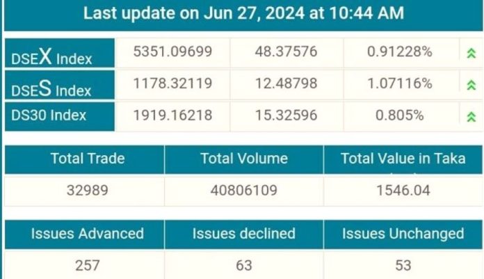 As of 10:44 a.m. writing this report, shares and units of 257 companies are on the list of rising prices on DSE. On the contrary, the price of 63 has decreased. And the price of 53 remains unchanged.